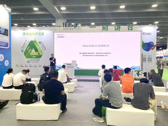 本次環(huán)博會技術(shù)交流大會上,上海在田技術(shù)經(jīng)理朱云峰就“單相流負(fù)壓排水技術(shù)在多場景的應(yīng)用”這一議題發(fā)表了演講,還與多位業(yè)內(nèi)專家進(jìn)行了技術(shù)交流。一番交流之后,各位專家紛紛對負(fù)壓排水技術(shù)在國內(nèi)應(yīng)用的前景給予了肯定。