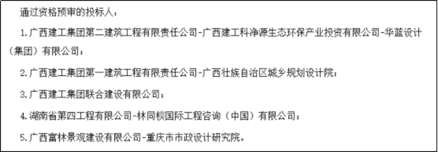 采用建設(shè)-運(yùn)營-移交(BOT)的方式實施,合作期限20年,含建設(shè)1年。通過資格預(yù)審的企業(yè)如下:
