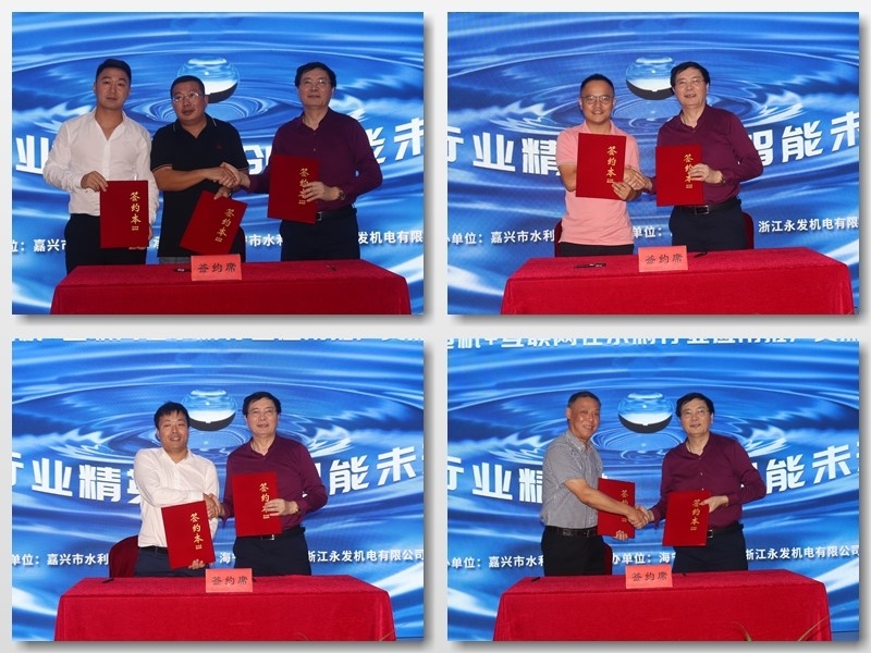 大會期間舉行的項目簽約環(huán)節(jié)中,永發(fā)機電與蘇州欣皓信息化項目合作、海寧市水利局與永發(fā)機電科技項目合作、永發(fā)機電與鴻翔水利戰(zhàn)略合作、永發(fā)機電與江能與利歐泵業(yè)麻涇港閘站施工項目舉辦了簽約儀式。
