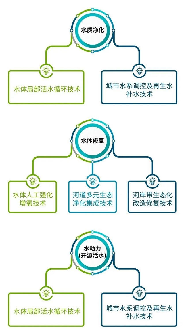 技術體系的重點在適合城鎮(zhèn)水體水質的新型人工濕地、新型深層曝氣塘、多級式塘-濕地復合系統(tǒng)、強化水體生態(tài)脫氮除磷設備、移動式體外凈化裝置等工藝技術方面的研發(fā)和應用,同時,在基于污染物總程平衡的工藝量化設計方法、水體生態(tài)修復智慧環(huán)境系統(tǒng)、水力循環(huán)模式和方法、水體修復與生態(tài)景觀營造等方面實現(xiàn)了有效創(chuàng)新,并形成了具體自主知識產權的技術體系。