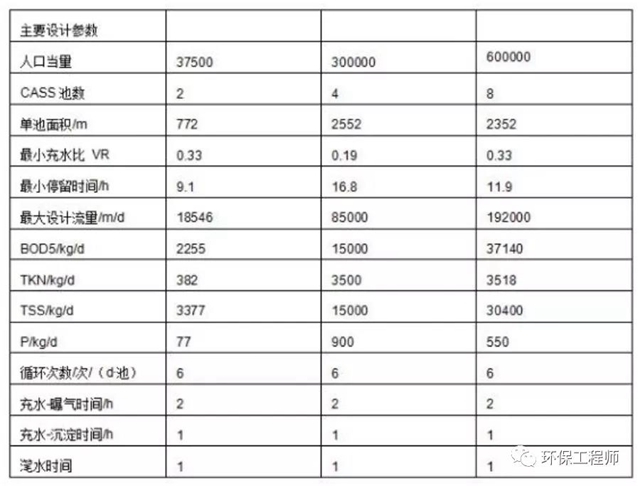 CASS工藝處理不同規(guī)模城市污水時(shí)的主要設(shè)計(jì)參數(shù)
