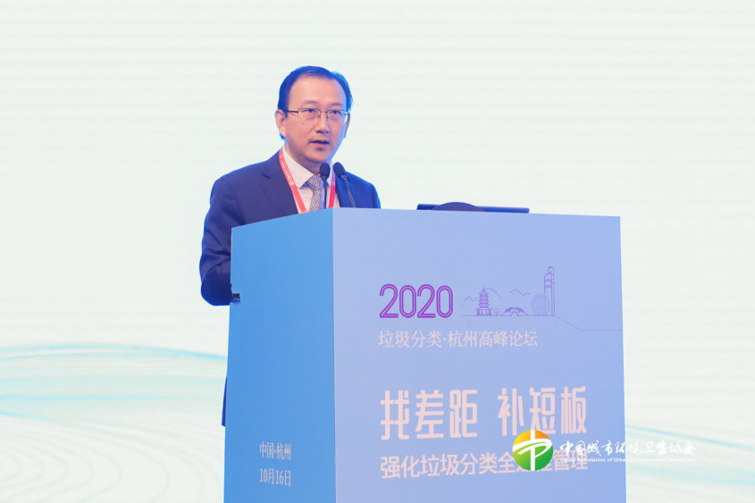 杭州市城市管理局局長(zhǎng)李磊就“高質(zhì)量全面推進(jìn)生活垃圾分類‘杭州模式’——杭州市生活垃圾分類回顧與展望”作了發(fā)言,他回顧了杭州垃圾分類工作進(jìn)程,從垃圾分類“杭州模式”的全面推進(jìn)、城鄉(xiāng)統(tǒng)籌全域覆蓋、再生資源回收體系轉(zhuǎn)型升級(jí)、“五多五少”問(wèn)題破解等方面介紹了杭州垃圾分類取得的主要成效,剖析了存在問(wèn)題,并對(duì)下一步工作進(jìn)行了部署和展望。