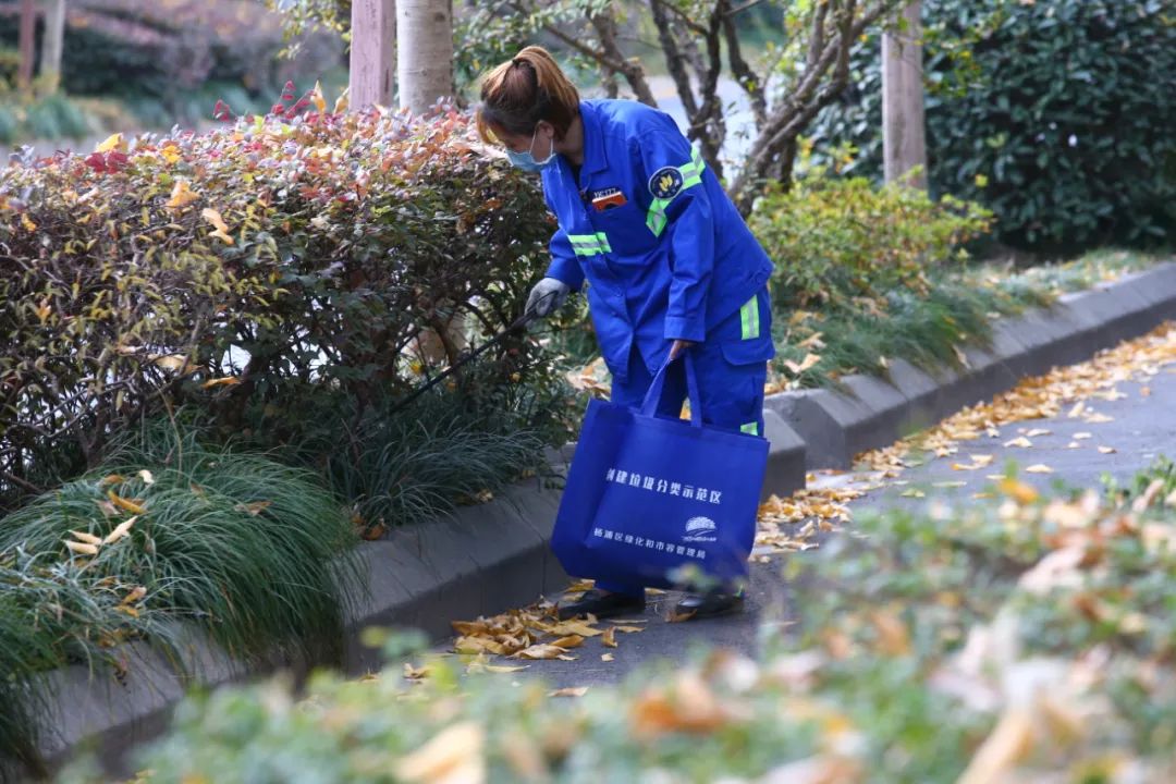 這樣的美景,卻少不了環(huán)衛(wèi)工人的精心“保護(hù)”。與平日工作時(shí)手拿掃帚不同,他們的工具變成了火鉗加環(huán)保袋,不再是大掃帚一路掃過去,而是要慢慢撿拾落葉中的垃圾。“落葉不掃,反而對(duì)我們的工作提出了更高的要求。”上海楊浦環(huán)境發(fā)展有限公司海真保潔分公司新江灣城清道班班長王興海告訴記者,這要求環(huán)衛(wèi)工人作業(yè)更精細(xì)化,如“繡花”一樣, 不能放過每個(gè)角落,花壇、角落、窨井溝渠處,落葉底下等,都是需要重點(diǎn)撿拾清理的地方。比如要翻找落葉下“藏”著的煙屁股,路旁矮灌木上的落葉,晚上還要用掃帚像雞毛撣子一樣“擼一擼”。