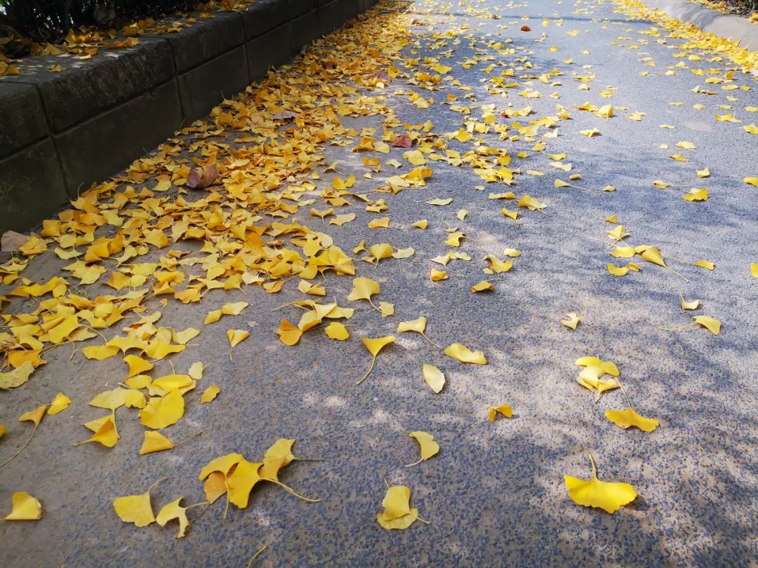 已經(jīng)鋪滿了大片的綠色和黃色交雜的落葉