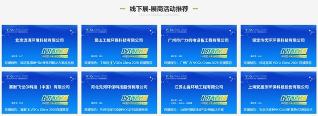 當然,線下的展商和產(chǎn)品也是VOCs China 2020的重頭戲。據(jù)了解,本屆展會匯聚300多家國內(nèi)外VOCs治理技術(shù)、工業(yè)、材料和裝備等企業(yè),展品范圍涵蓋環(huán)境監(jiān)測、環(huán)保監(jiān)管、通風收集、智慧環(huán)保與物聯(lián)網(wǎng)技術(shù)等14個板塊內(nèi)容。