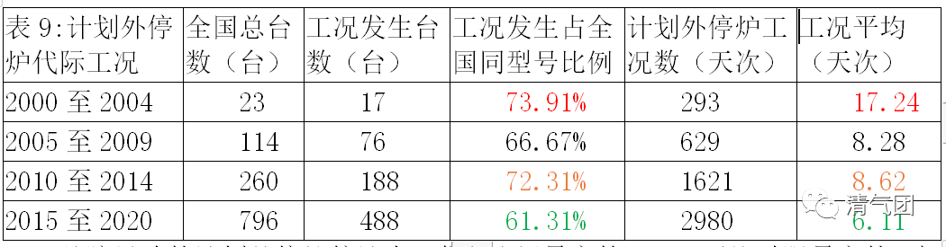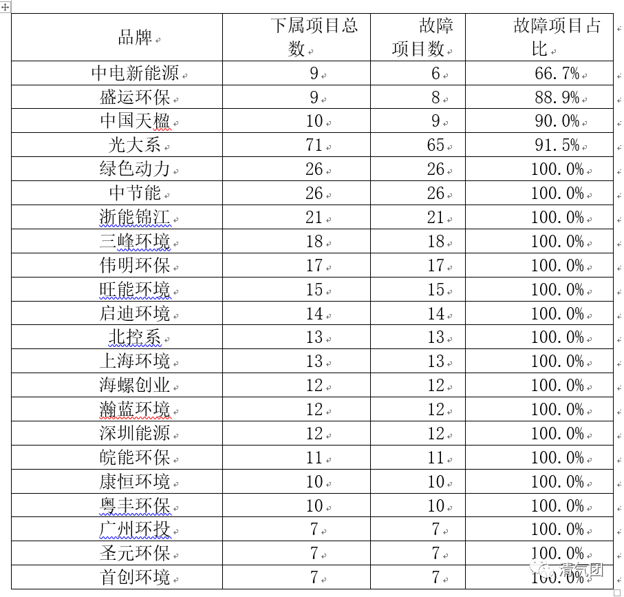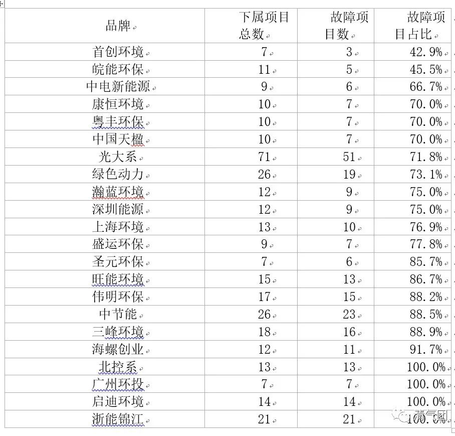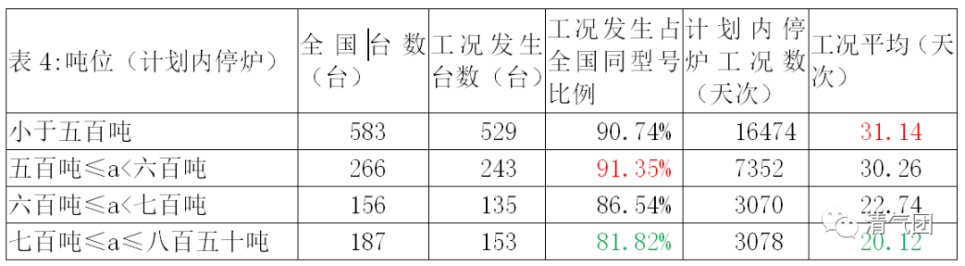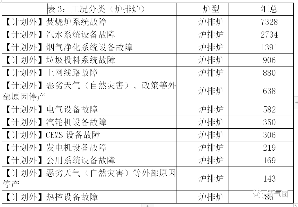 生態(tài)環(huán)境部下轄生活垃圾焚燒發(fā)電廠自動(dòng)監(jiān)測(cè)數(shù)據(jù)公開(kāi)平臺(tái)中,對(duì)所有垃圾焚燒廠的每一臺(tái)焚燒爐,是否檢修,是否出現(xiàn)重大故障等異常工況,都有了明確的公開(kāi)要求,如果發(fā)生相關(guān)工況,每個(gè)焚燒企業(yè)必須對(duì)所轄的每臺(tái)爐,每天必須公示一次。減少垃圾焚燒廠的檢修和故障,是每個(gè)垃圾焚燒企業(yè)管理者和地方環(huán)衛(wèi)主管單位都極力想實(shí)現(xiàn)的主要運(yùn)營(yíng)和管理目標(biāo)。對(duì)于環(huán)衛(wèi)主管部門(mén)來(lái)說(shuō),檢修多,說(shuō)明停爐多,這會(huì)影響城市生活垃圾的正常處置效率,影響環(huán)境衛(wèi)生工作的正常開(kāi)展;故障多,有可能造成垃圾焚燒煙氣排放的穩(wěn)定性,煙氣超標(biāo)排放的幾率可能上升。對(duì)于垃圾焚燒廠來(lái)說(shuō),故障檢修多,帶來(lái)的企業(yè)運(yùn)營(yíng)成本上升,臭氣污染風(fēng)險(xiǎn)增大,垃圾處理費(fèi)收入和發(fā)電收入下降,是很不劃算的事情。所以,相關(guān)情況的公示,也有利于群眾協(xié)助政府,更好的對(duì)垃圾焚燒廠進(jìn)行監(jiān)督,也有利于政府部門(mén)和相關(guān)綠色金融機(jī)構(gòu),更好的判斷垃圾焚燒企業(yè)的基本運(yùn)營(yíng)能力。同時(shí),根據(jù)住建部2010年發(fā)布的《生活垃圾處理技術(shù)指南》要求,一個(gè)垃圾焚燒項(xiàng)目企業(yè)的運(yùn)營(yíng)能力和運(yùn)維水平高低,可以用一個(gè)基本的指標(biāo)來(lái)衡量,就是單臺(tái)焚燒爐的年運(yùn)營(yíng)小時(shí)數(shù),是否能夠達(dá)到八千小時(shí),折合成天數(shù),為333天,這也是住建部相關(guān)技術(shù)指南對(duì)垃圾焚燒運(yùn)維能力的基本要求。以一年365天計(jì)算,一臺(tái)垃圾焚燒爐年運(yùn)行期間,有768小時(shí),折合32天,可以處于空白運(yùn)營(yíng)期,也是留給垃圾焚燒爐進(jìn)行各種檢修的空檔時(shí)間。如果一個(gè)垃圾焚燒企業(yè)運(yùn)營(yíng)能力強(qiáng),設(shè)備選型合理,運(yùn)維日常操作規(guī)范和設(shè)備保養(yǎng)到位,就會(huì)減少故障發(fā)生幾率,減少檢修所需時(shí)間,其單爐運(yùn)營(yíng)時(shí)間可能超過(guò)八千小時(shí)。同理,如果運(yùn)營(yíng)能力弱,故障幾率高,檢修所需時(shí)間就可能大大增加,其單爐運(yùn)營(yíng)時(shí)間就可能少于八千小時(shí)。清氣團(tuán)、上海青悅、蕪湖生態(tài)中心三家組織的垃圾焚燒esg環(huán)境績(jī)效平臺(tái)研究團(tuán)隊(duì),對(duì)生態(tài)環(huán)境部相關(guān)公示信息,進(jìn)行了詳細(xì)收集,截止2020年11月2日,共收錄了六萬(wàn)兩千余條有效工況信息。囊括了29省,204個(gè)城市,480家企業(yè),1093臺(tái)垃圾焚燒爐的工況情況。公開(kāi)平臺(tái)中,對(duì)企業(yè)工況的公示,進(jìn)行標(biāo)注。前兩大類(lèi),是必須停爐或停運(yùn)的工況,后一類(lèi),則是無(wú)需停爐停運(yùn),可以在運(yùn)營(yíng)期間進(jìn)行維修,但會(huì)影響爐溫達(dá)標(biāo)的信息。同時(shí),三類(lèi)信息還必須包括相關(guān)過(guò)程信息,如是否停爐,是否啟爐,是否烘爐,是否停運(yùn),又或是何種故障導(dǎo)致的檢修。(見(jiàn)圖1)計(jì)劃內(nèi)檢修,是企業(yè)根焚燒爐持續(xù)運(yùn)行狀況,為了解決存在的問(wèn)題或規(guī)律性的正常維護(hù),而做出的有計(jì)劃有目的,對(duì)設(shè)備進(jìn)行預(yù)防性修理或徹底檢查的檢修工作,這種檢修研究團(tuán)隊(duì)認(rèn)為是負(fù)責(zé)任的運(yùn)維管理表現(xiàn)。但有一種特殊的計(jì)劃內(nèi)檢修,研究團(tuán)隊(duì)認(rèn)為值得深入分析。如,由于垃圾焚燒的工藝特殊性,生活垃圾受政策、天氣、經(jīng)濟(jì)等因素影響,導(dǎo)致有些企業(yè)入廠垃圾量不夠,焚燒能力發(fā)生季節(jié)性過(guò)剩,所以企業(yè)借計(jì)劃內(nèi)檢修之名義,對(duì)部分爐子進(jìn)行臨時(shí)停爐停運(yùn),等入廠垃圾量到達(dá)飽和,再擇機(jī)啟爐。計(jì)劃外檢修和故障檢修,則是因?yàn)榉贌隣t運(yùn)行過(guò)程中,臨時(shí)發(fā)生故障,影響整個(gè)垃圾焚燒系統(tǒng)的正常運(yùn)營(yíng),視情況決定是否停爐的檢修。平臺(tái)數(shù)據(jù)將計(jì)劃外檢修和故障,還細(xì)分為13個(gè)小類(lèi),并要求企業(yè)上報(bào)系統(tǒng)時(shí),必須如實(shí)選擇。細(xì)分項(xiàng)目如下:3、惡劣天氣(自然災(zāi)害)、政策等外部原因停產(chǎn)4、惡劣天氣(自然災(zāi)害)等外部原因停產(chǎn)計(jì)劃外檢修和故障的頻次如果發(fā)生較多、檢修時(shí)間較長(zhǎng),說(shuō)明相關(guān)焚燒爐的運(yùn)行質(zhì)量,焚燒操作班組的運(yùn)維能力,已經(jīng)存在較大問(wèn)題隱患,也是研究團(tuán)隊(duì)較為關(guān)注的。生態(tài)環(huán)境部對(duì)相關(guān)情況的公示,非常有利于公眾對(duì)垃圾焚燒廠運(yùn)營(yíng)質(zhì)量進(jìn)行較為清晰的識(shí)別和判斷,有助于公眾更便利的監(jiān)督相關(guān)企業(yè),也將減少以往公眾對(duì)垃圾焚燒廠信息公開(kāi)不透徹帶來(lái)的不信任和抗拒心理。接下來(lái),研究團(tuán)隊(duì)對(duì)相關(guān)數(shù)據(jù)進(jìn)行了詳細(xì)統(tǒng)計(jì)分析,發(fā)現(xiàn)了許多有意思的信息。第一,