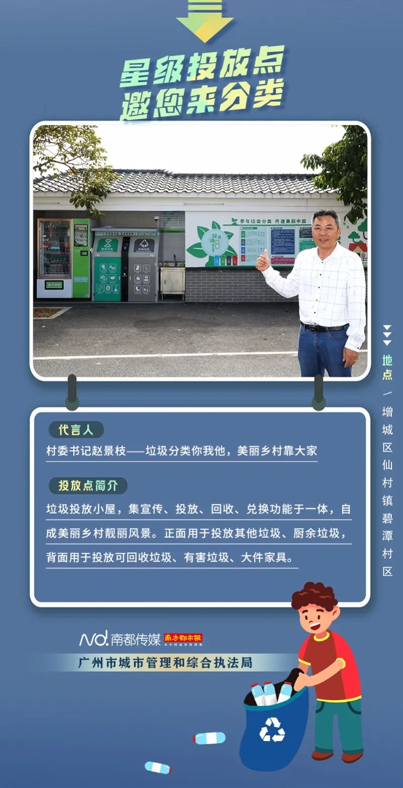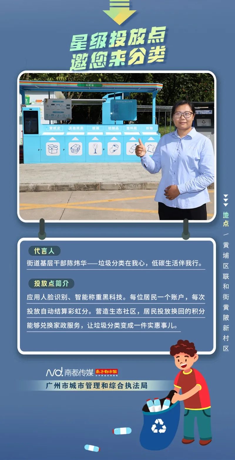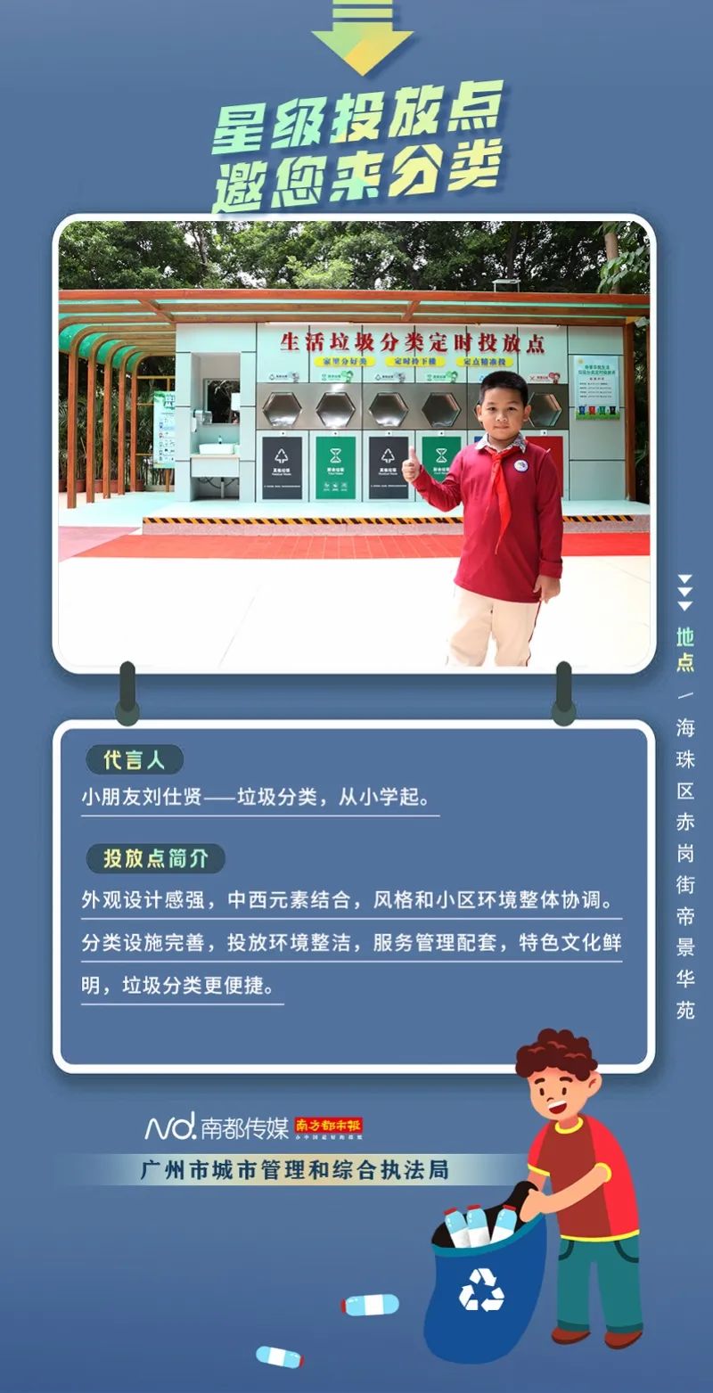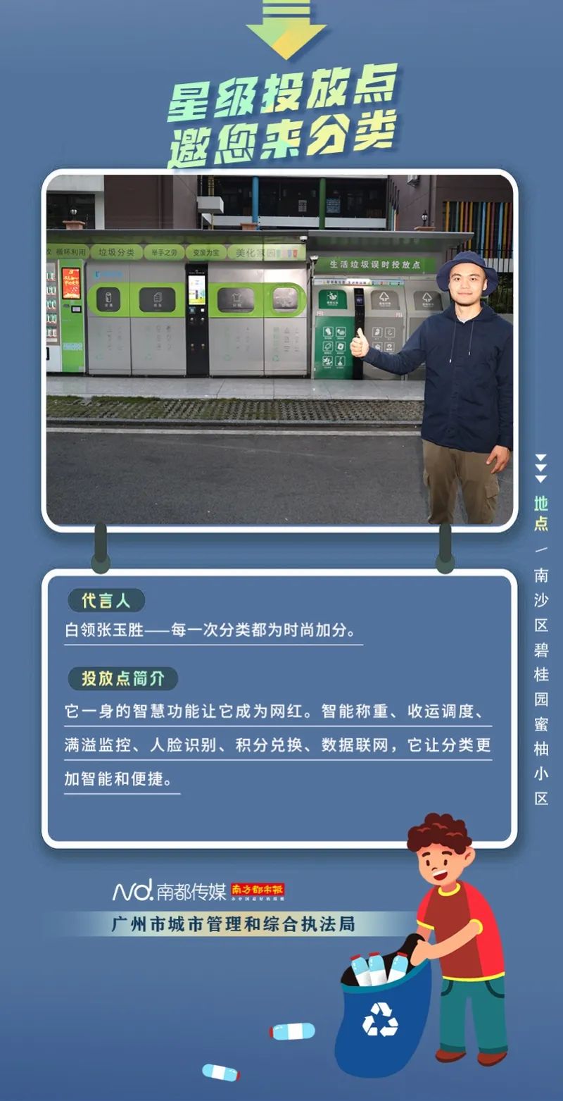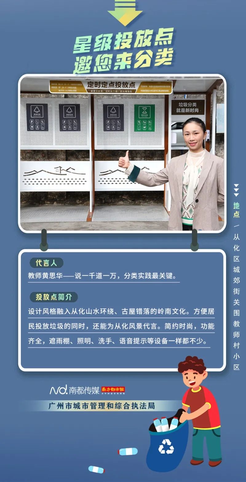 廣州市城市管理和綜合執(zhí)法局聯(lián)合南方都市報聯(lián)合推出“星級投放點 邀您來分類”系列海報,從廣州全市11個行政區(qū)遴選出“星級投放點”,并邀請來自各行各業(yè)的11位廣州街坊為廣州垃圾分類代言。