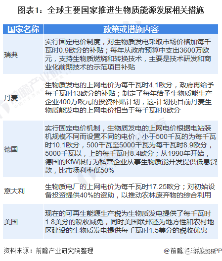 在歐美等發(fā)達(dá)國家,生物質(zhì)發(fā)電技術(shù)已經(jīng)非常成熟,且成為一些國家重要的發(fā)電和供熱方式。目前,歐盟是全球生產(chǎn)和消費(fèi)生物質(zhì)燃料最多的國家,美國排第二,這兩大主體引領(lǐng)者全球生物質(zhì)能源發(fā)展。而從對比各國生物質(zhì)能源相關(guān)政策和法規(guī)發(fā)現(xiàn),上網(wǎng)電價優(yōu)惠、稅費(fèi)減免和財政補(bǔ)貼是各國最為常用的激勵性政策手段。