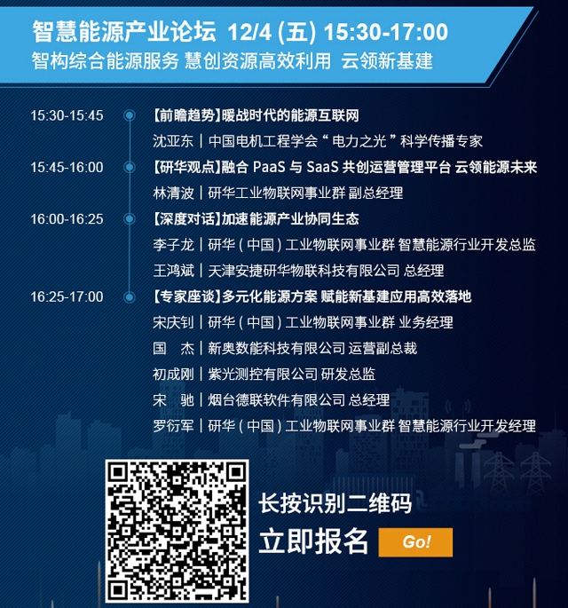 而在12月4日15:30—17:00時召開的智慧能源產(chǎn)業(yè)論壇(←點擊進入報名詳情頁)上,同樣是精彩紛呈:聚焦“智構綜合能源服務、慧創(chuàng)資源高效利用、云領新基建”議題,首先是中國電機工程學會“電力之光”科學傳播專家沈亞東將帶來《【前瞻趨勢】暖戰(zhàn)時代的能源互聯(lián)網(wǎng)》;研華工業(yè)物聯(lián)網(wǎng)事業(yè)群副總經(jīng)理林清波將分享《融合PaaS與SaaS共創(chuàng)運營管理平臺 云領能源未來》主題演講;緊接著,研華(中國)工業(yè)物聯(lián)網(wǎng)事業(yè)群智慧能源行業(yè)開發(fā)總監(jiān)李子龍、天津安捷研華物聯(lián)科技有限公司總經(jīng)理王鴻斌將就《加速能源產(chǎn)業(yè)協(xié)同生態(tài)》進行分享。