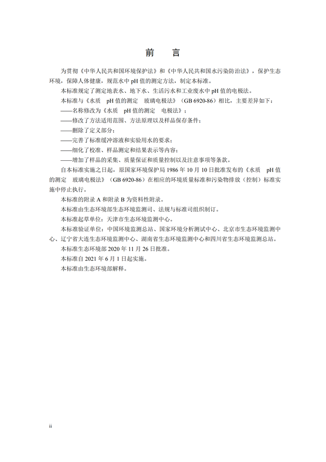 《水質(zhì) pH值的測定 電極法》(HJ 1147-2020)