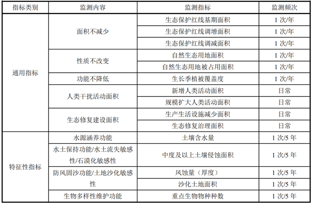 監(jiān)測(cè)內(nèi)容包括生態(tài)保護(hù)紅線內(nèi)年度實(shí)際完成的各類型人類活動(dòng)及設(shè)施清退面積與生態(tài)修復(fù)治理面積總和。