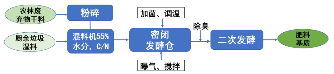 城鄉(xiāng)接合部,城鎮(zhèn)化明顯,人口密度大,垃圾量大,土地資源緊缺,沒有足夠的農(nóng)田可消納處理廢棄物產(chǎn)物??蛇x擇占地面積小、日處理效率高、發(fā)酵時(shí)間短的處理方式。