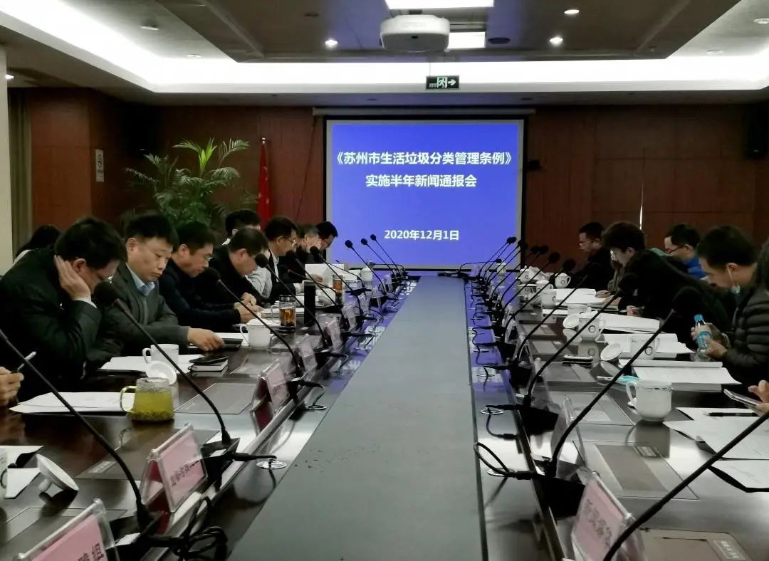 12月1日,《蘇州市生活垃圾分類(lèi)管理?xiàng)l例》實(shí)施半年新聞通報(bào)會(huì)在市城市管理局召開(kāi),會(huì)上,市城管局副局長(zhǎng)陸繼軍對(duì)垃圾分類(lèi)工作整體推進(jìn)情況進(jìn)行了通報(bào);市城管局副局長(zhǎng)閻鴻泰對(duì)垃圾分類(lèi)執(zhí)法情況進(jìn)行了通報(bào);市文廣旅局發(fā)布旅館業(yè)垃圾減量措施;市商務(wù)局通報(bào)再生資源回收利用管理相關(guān)情況。