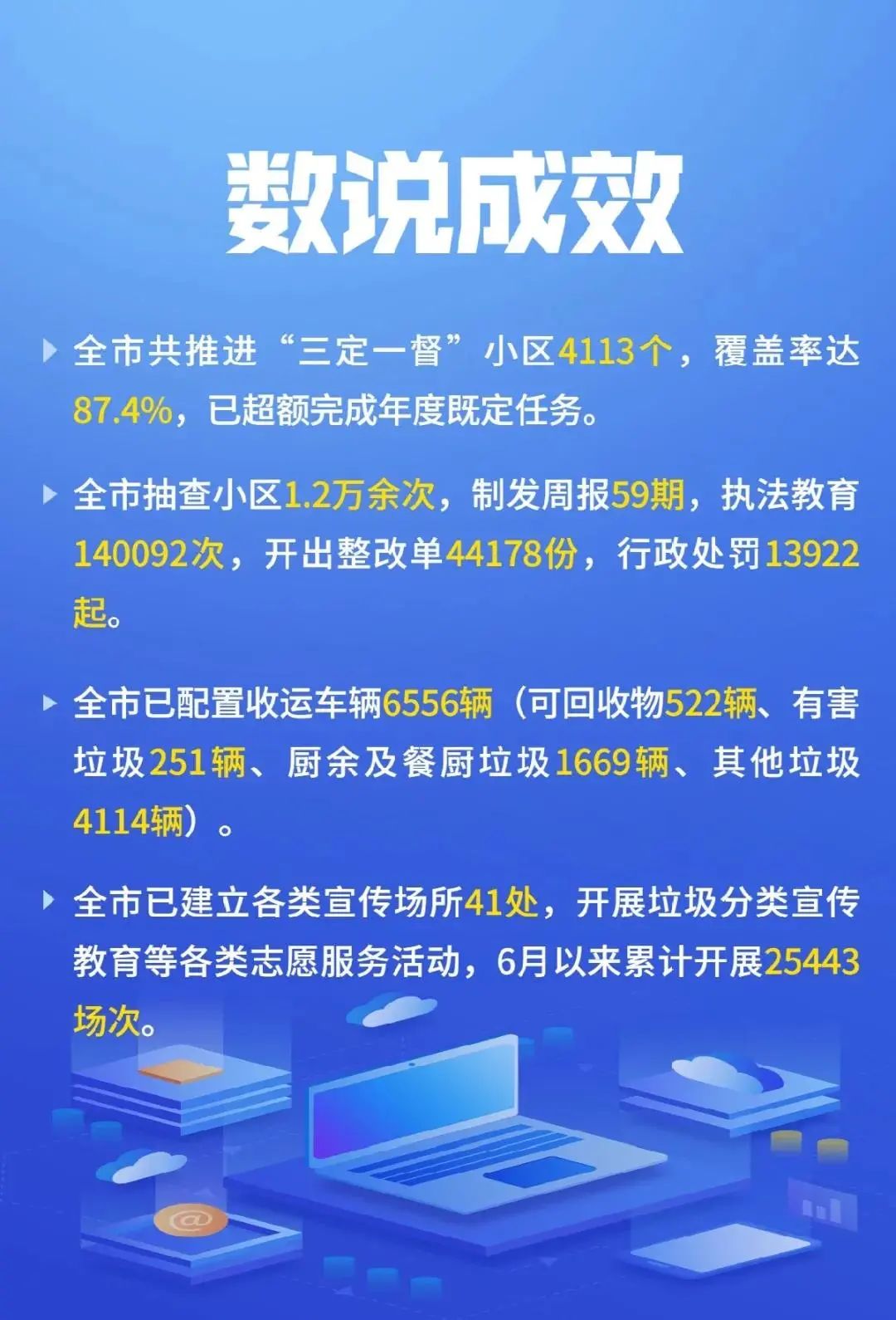 ? 4.3萬(wàn)名黨政機(jī)關(guān)人員參與垃圾分類(lèi)在線考試,參與率95%;辦公室垃圾分類(lèi)投放準(zhǔn)確率從二季度的53%上升至目前的80%。