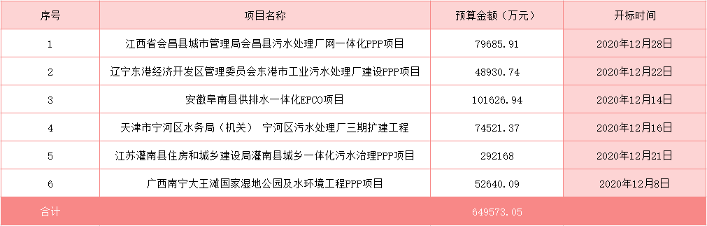 6個項(xiàng)目,總投資額超54億元,水處理標(biāo)的風(fēng)采依舊。