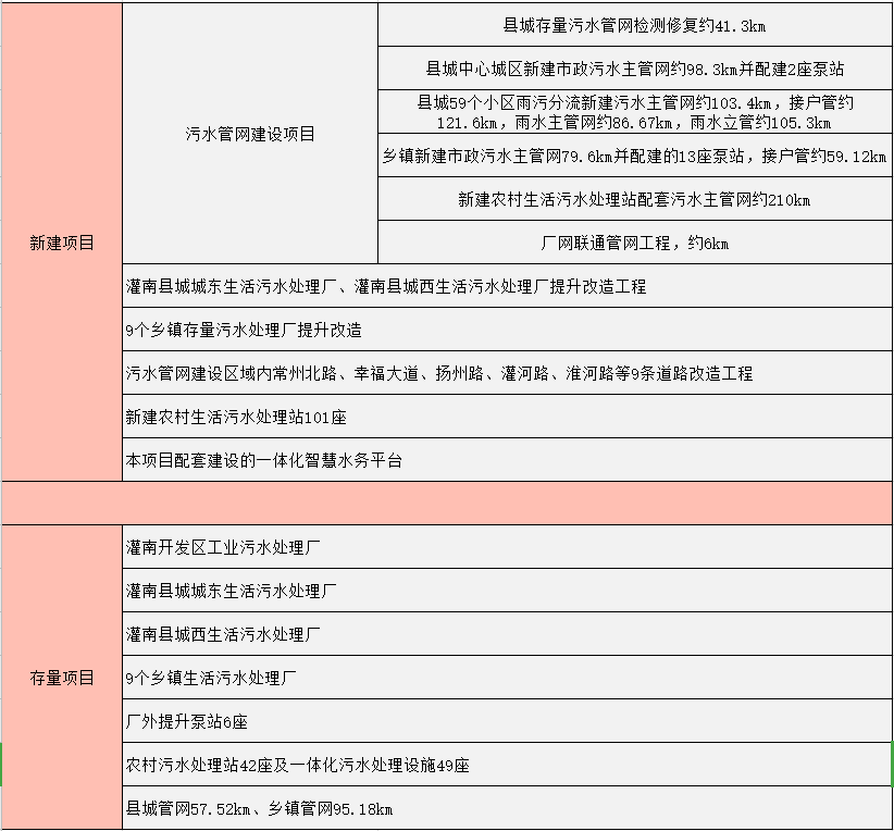 項(xiàng)目內(nèi)容:新建污水收集管網(wǎng)、污水提升泵站和改造一座污水處理廠。