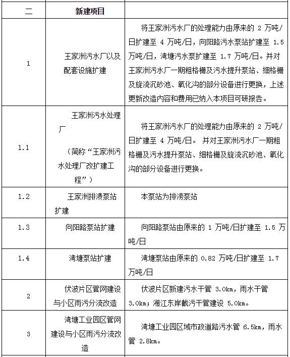 存量項(xiàng)目為王家洲污水處理廠以及配套設(shè)施。新建項(xiàng)目的建設(shè)內(nèi)容包括王家洲污水處理廠擴(kuò)建、泵站擴(kuò)建、管網(wǎng)建設(shè)與雨污分流改造工程、水環(huán)境智慧管控平臺(tái)建設(shè)工程。