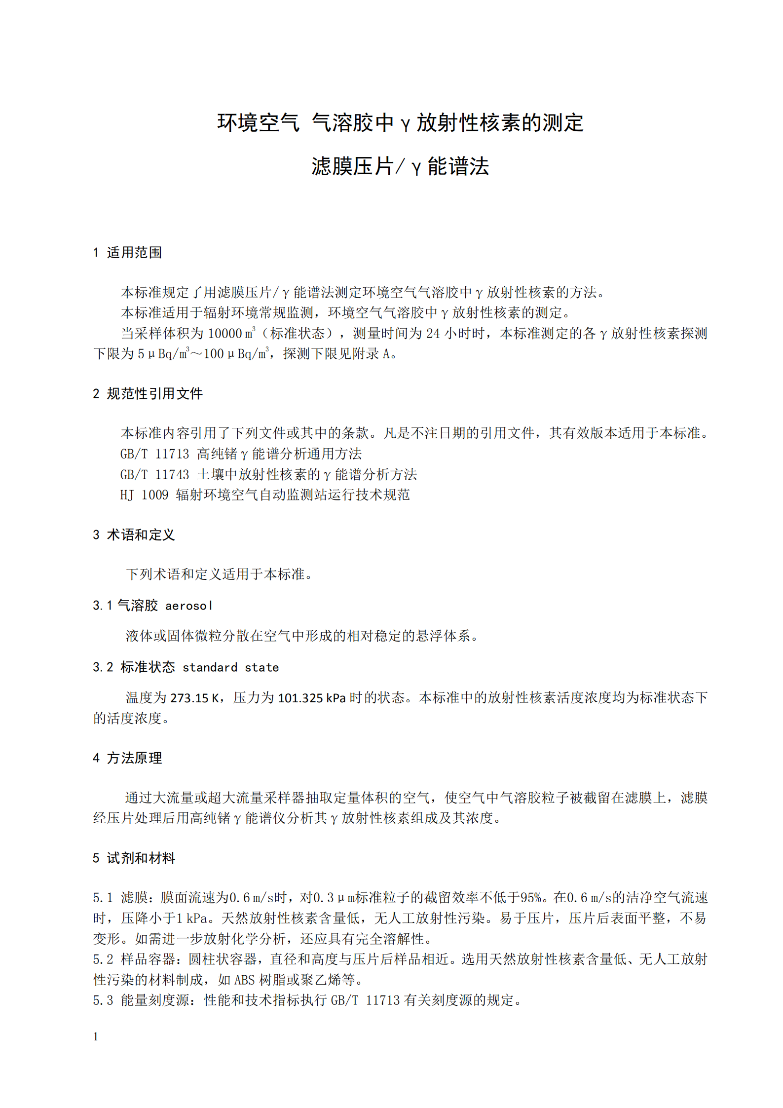 本標(biāo)準(zhǔn)適用于輻射環(huán)境常規(guī)監(jiān)測,環(huán)境空氣氣溶膠中γ放射性核素的測定。