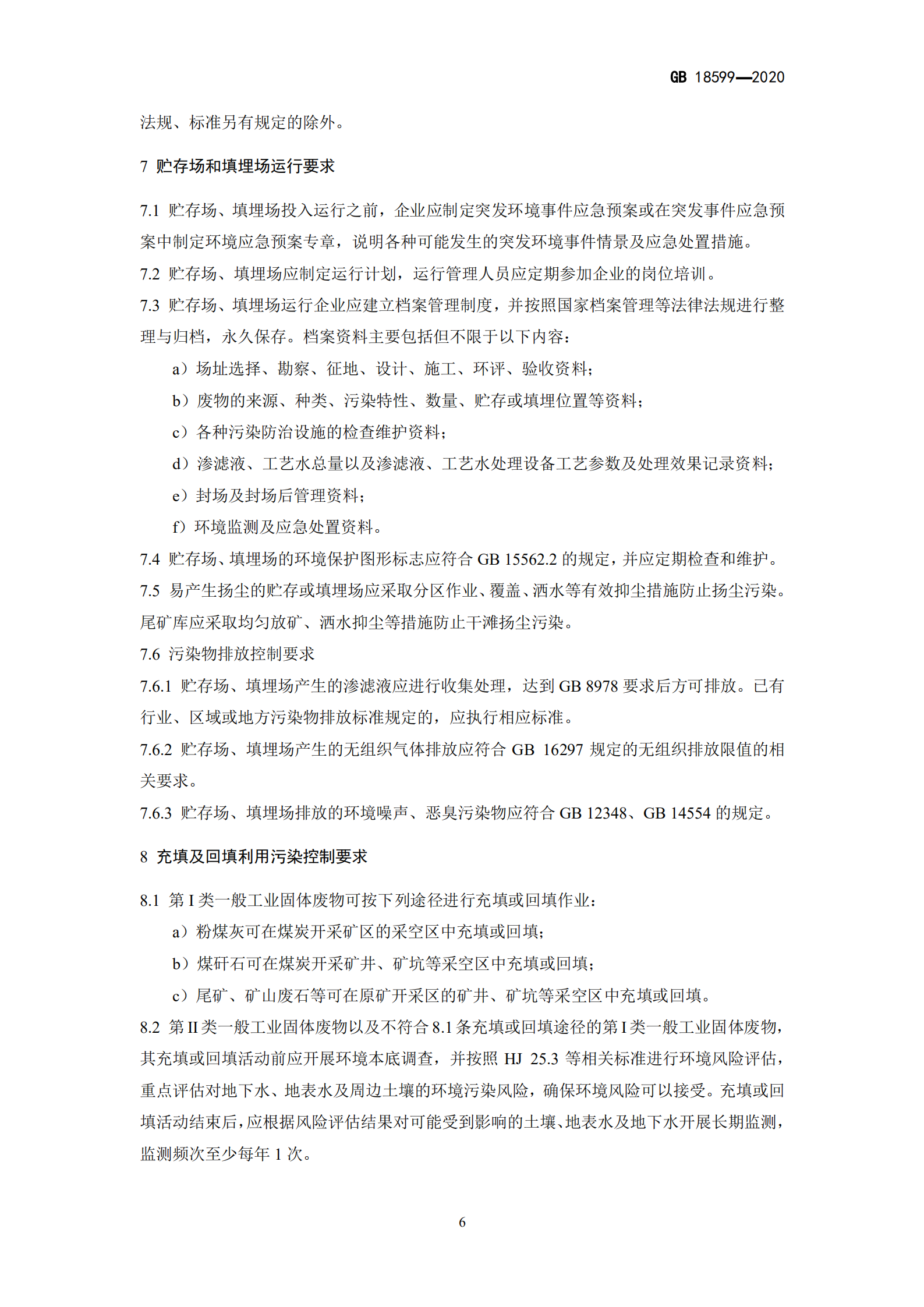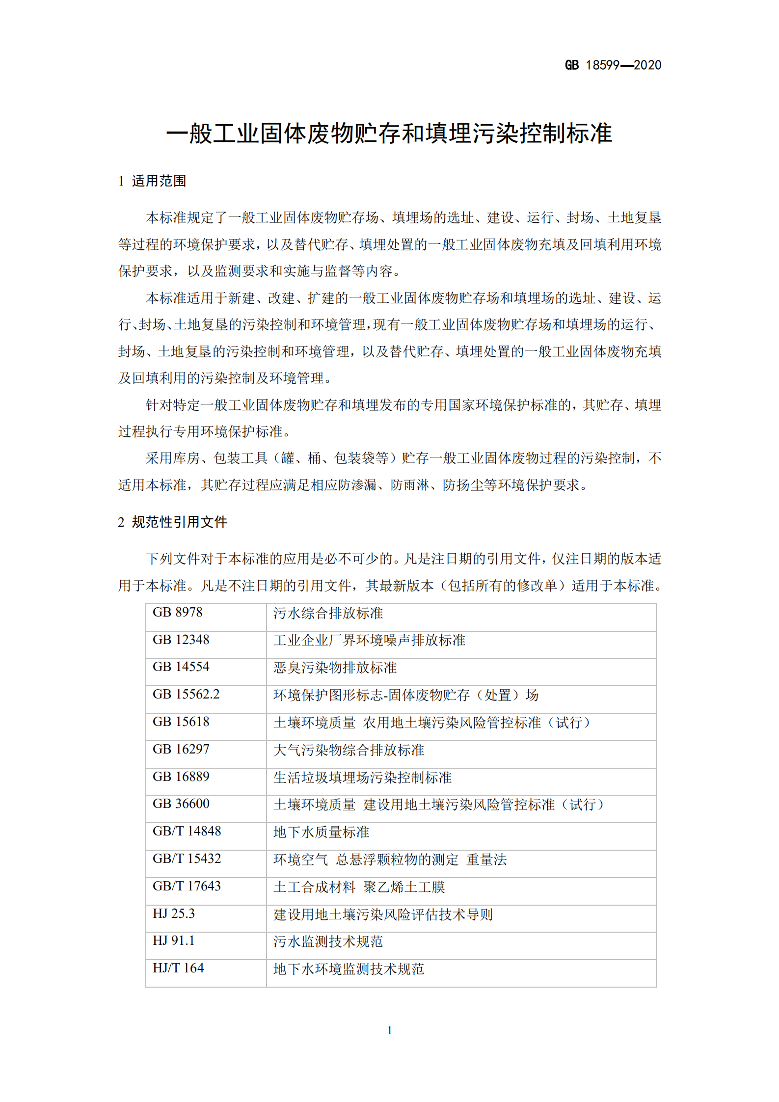 一般工業(yè)固體廢物貯存和填埋 污染控制標(biāo)準(zhǔn)