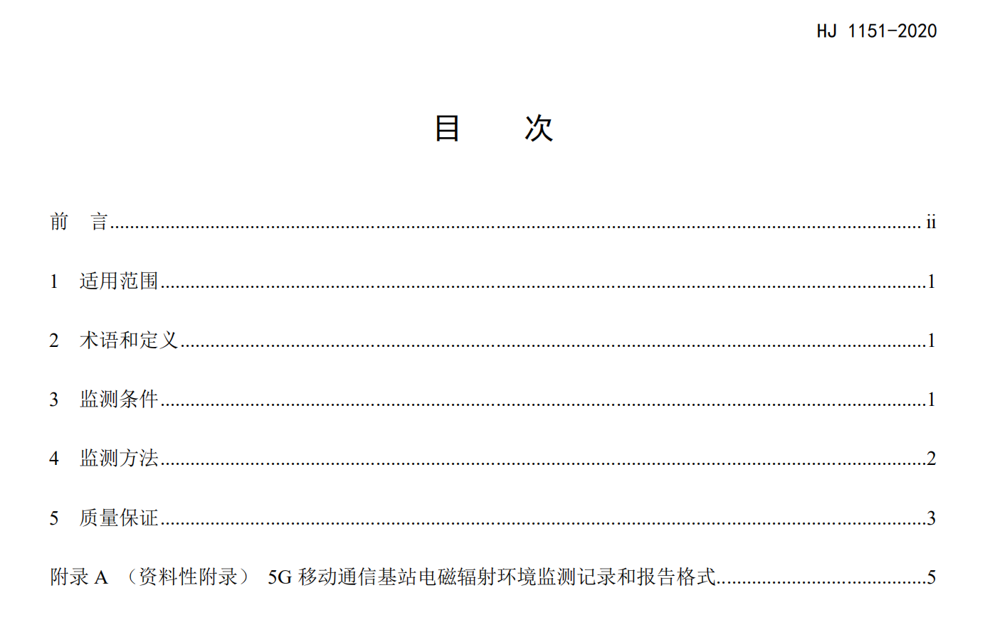 本標(biāo)準(zhǔn)規(guī)定了工作頻率小于 6GHz 的 5G 移動(dòng)通信基站電磁輻射環(huán)境監(jiān)測(cè)的內(nèi)容、方法等技術(shù)要求。
