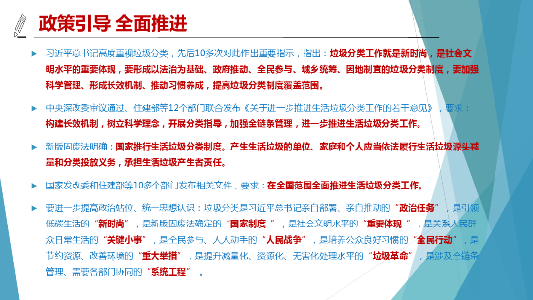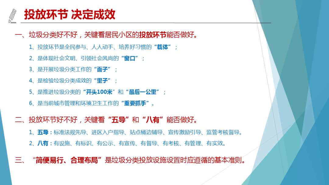 自習(xí)近平總書(shū)記2016年11月21日提出要建立生活垃圾分類(lèi)制度以來(lái),46個(gè)重點(diǎn)城市的垃圾分類(lèi)工作取得了初步成效,其他城市的垃圾分類(lèi)工作也在逐步推進(jìn),但由于受新冠疫情等影響,總體進(jìn)展情況低于預(yù)期。垃圾分類(lèi)是一項(xiàng)涉及面很廣的系統(tǒng)工程,其中小區(qū)投放環(huán)節(jié)是決定成敗的核心環(huán)節(jié),而“簡(jiǎn)便易行、合理布局”是投放設(shè)施設(shè)置的基本準(zhǔn)則。如何按照這個(gè)準(zhǔn)則來(lái)規(guī)范管理人職責(zé)和行為、優(yōu)化投放點(diǎn)設(shè)置和形式、實(shí)施居民區(qū)宣傳和督導(dǎo)?本期固廢觀(guān)察將與你一一分享。