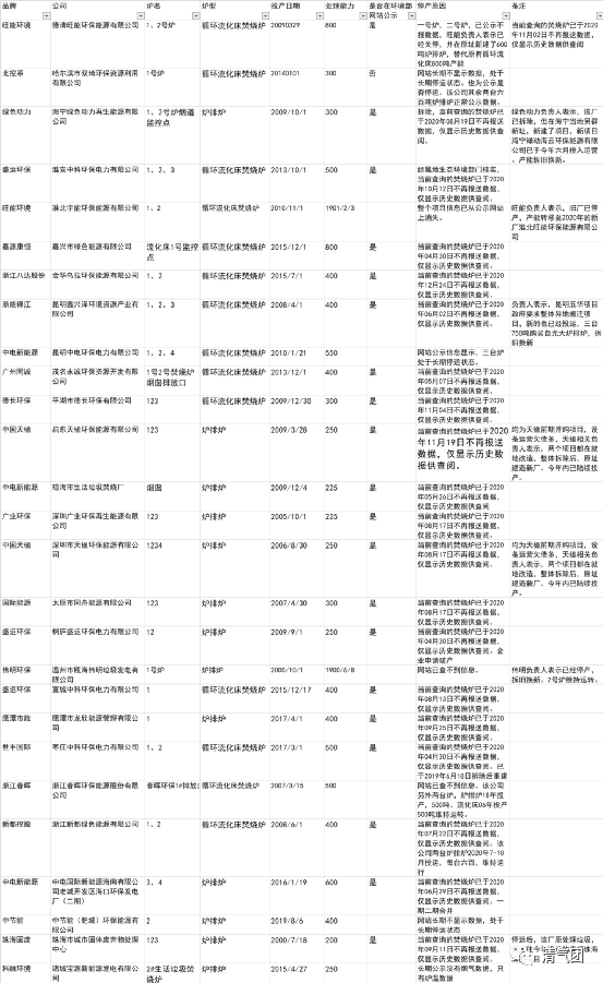 旗下的另一間企業(yè),淮北宇能環(huán)保能源有限公司(800噸處理量,兩臺循環(huán)流化床)已經(jīng)整體停運,相關(guān)垃圾處理業(yè)務(wù)也轉(zhuǎn)由該公司在此地遷址重建的新廠——淮北旺能環(huán)保能源有限公司,并已于2020年正式投運,新廠處理量1500噸,兩臺750噸爐排爐。錦江環(huán)境:旗下昆明鑫興澤環(huán)境資源產(chǎn)業(yè)有限公司,共有三臺爐,處理量為1200噸,已于2020年06月02日不再報送數(shù)據(jù),并已在生態(tài)環(huán)境部生活垃圾焚燒發(fā)電廠自動監(jiān)測信息公示平臺,進行了主動公示。據(jù)悉,該項目屬于應(yīng)政府要求整體異地搬遷、拆舊換新的項目,且新廠已經(jīng)投運,新項目的焚燒爐為三臺750噸爐排爐。不過,研究團隊尚未在公示平臺查詢到相關(guān)信息,估計還是處于試運行狀態(tài),相關(guān)煙氣、爐溫、工況等數(shù)據(jù)尚未上網(wǎng)。中國天楹:旗下啟東和深圳項目,目前均整體停運,并已在生態(tài)環(huán)境部生活垃圾焚燒發(fā)電廠自動監(jiān)測信息公示平臺,進行了主動公示。據(jù)悉,兩個項目都是并購項目,前期設(shè)備和環(huán)保設(shè)施欠債較多,需要進行就地改造,整體拆除原有設(shè)備,原址新建焚燒爐臺套產(chǎn)線,基本算是原址建造新廠,且今年內(nèi)都將陸續(xù)投產(chǎn)。不過,研究團隊尚未在公示平臺查詢到相關(guān)信息,估計還是處于試運行狀態(tài),相關(guān)煙氣、爐溫、工況等數(shù)據(jù)尚未上網(wǎng)。偉明環(huán)保:旗下溫州甌海項目,停運了一臺160噸的爐排爐,該爐于2000年投產(chǎn),至今已運行20年。綠色動力:旗下海寧綠色動力再生能源有限公司(處理量六百噸,兩臺09年投運爐排爐)已經(jīng)停運。同時,在海寧當(dāng)?shù)亓肀傩轮?,新建了項目海寧綠動海云環(huán)保能源有限公司,已于今年六月投入運營,新項目處理量為1500噸,兩臺750噸爐排爐。相關(guān)信息已在生態(tài)環(huán)境部生活垃圾焚燒發(fā)電廠自動監(jiān)測信息公示平臺,進行了主動公示。