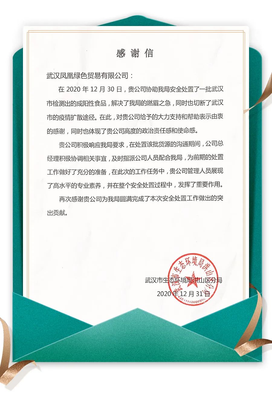事后,武漢市生態(tài)環(huán)境局向武漢鳳凰項(xiàng)目發(fā)來(lái)感謝信,信中表示,在此次工作任務(wù)中,武漢鳳凰項(xiàng)目體現(xiàn)出了高度的政治責(zé)任感和使命感,展現(xiàn)出高水平的專(zhuān)業(yè)素養(yǎng),發(fā)揮了重要作用。