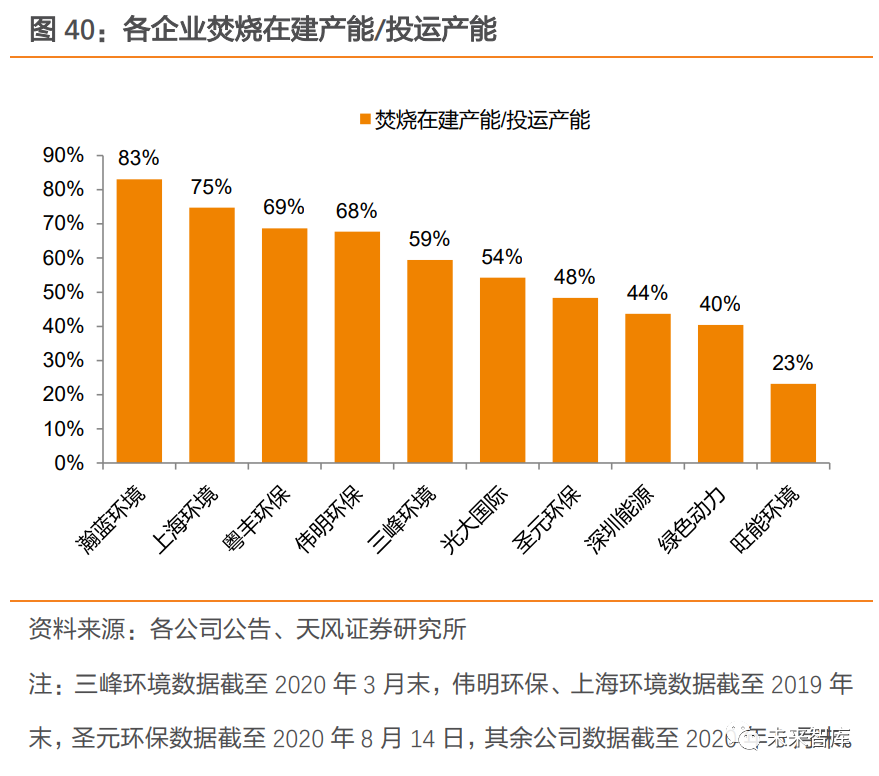 海外拓展穩(wěn)步推進(jìn),龍頭企業(yè)擁有多個海外運營項目。隨著國內(nèi)焚燒設(shè)備及技術(shù)的日漸成 熟,國內(nèi)垃圾焚燒發(fā)電企業(yè)已由早期的技術(shù)引進(jìn)者轉(zhuǎn)向設(shè)備、技術(shù)輸出者,并通過海外并購等方式迅速開拓海外市場。目前已有多家企業(yè)擁有數(shù)個海外投資運營的垃圾焚燒發(fā)電項目,涵蓋東南亞、歐洲乃至美洲等多個區(qū)域。在國內(nèi)產(chǎn)能增速放緩背景下,企業(yè)“出?!被虺哨厔荨?/span>一方面,國內(nèi)新增產(chǎn)能增速呈放緩 趨勢;另一方面,海外新興市場空間廣闊。發(fā)展中國家城市生活垃圾的無害化率較低,對垃圾焚燒技術(shù)和裝備需求旺盛。國內(nèi)企業(yè)有望搭乘“一帶一路”政策東風(fēng),憑借成熟的技術(shù)與裝備進(jìn)一步擴(kuò)大海外業(yè)務(wù)規(guī)模,海外業(yè)務(wù)發(fā)展前景廣闊。展望未來,行業(yè)集中度提升+海外市場拓展,龍頭增速有望高于行業(yè)。垃圾焚燒行業(yè)具有一定的資金、技術(shù)壁壘,且對企業(yè)的項目運營能力有一定要求,龍頭企業(yè)優(yōu)勢突出,訂單獲取能力較強(qiáng),疊加較強(qiáng)的并購整合能力以及海外業(yè)務(wù)拓展能力,增速有望高于行業(yè)。龍頭企業(yè)在建及籌建產(chǎn)能規(guī)模大,未來隨著在建項目逐步達(dá)產(chǎn),業(yè)績有望保持較快增長。