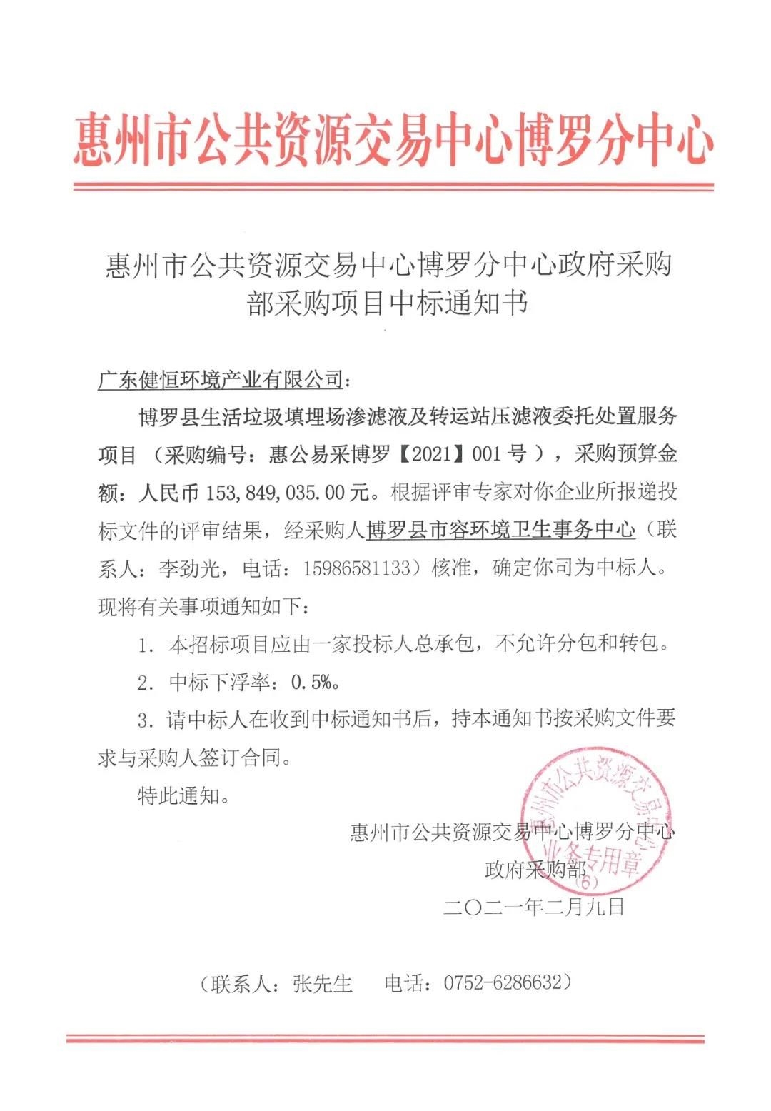 原標(biāo)題:1.5億!健恒環(huán)境中標(biāo)廣東省惠州市博羅縣生活垃圾填埋場(chǎng)滲濾液項(xiàng)目