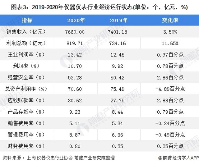 中國儀器儀表行業(yè)是一個高速、平穩(wěn)發(fā)展的行業(yè)。2020年儀器儀表行業(yè)銷售收入、利潤總額、主業(yè)利潤率、利潤率、經(jīng)營安全率、銷售費(fèi)用率和管理費(fèi)用率等7個指標(biāo)好于2019年同期,其余4個指標(biāo)差于2019年。