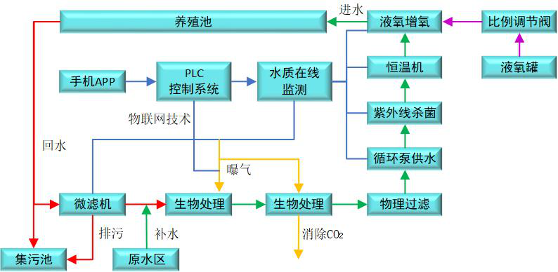 多營養(yǎng)層次綜合養(yǎng)殖模式。“多營養(yǎng)層次綜合養(yǎng)殖模式”是指在同一養(yǎng)殖區(qū)域內(nèi)合理搭配不同營養(yǎng)層級、養(yǎng)殖生態(tài)位互補的動植物,實現(xiàn)水質(zhì)調(diào)控、營養(yǎng)物質(zhì)循環(huán)利用、生態(tài)防病及質(zhì)量安全控制,在提高養(yǎng)殖效益的同時減少養(yǎng)殖廢物排放。威海市尋山集團(tuán)與水科院黃海所合作,在桑溝灣海域構(gòu)建“721模式”,即上層養(yǎng)殖海帶,占單位養(yǎng)殖面積的70%;中層養(yǎng)殖貝類、魚類,占單位養(yǎng)殖面積的20%;底層養(yǎng)殖鮑魚、海參,占位養(yǎng)殖面積的10%。該模式與傳統(tǒng)單一養(yǎng)殖模式相比,年產(chǎn)出增加30%,固碳量11萬噸。桑溝灣多營養(yǎng)層級養(yǎng)殖模式累計吸引了全世界30多個國家和地區(qū)的專家學(xué)者前來學(xué)習(xí)考察,成為綠色養(yǎng)殖樣板。圖 6 多營養(yǎng)層次綜合養(yǎng)殖模式示意圖表 1 立體生態(tài)養(yǎng)殖每畝產(chǎn)量及收益情況對比表注:貝類及底播增殖品種養(yǎng)殖周期為2-2.5年工業(yè)化循環(huán)水養(yǎng)殖技術(shù)模式。采用標(biāo)準(zhǔn)化、模塊化、工業(yè)化循環(huán)水養(yǎng)殖技術(shù),通過水質(zhì)測控、糞便收集、水體凈化、恒溫供氧、魚菜共生和智慧漁業(yè)等功能模塊,實現(xiàn)資源高效利用、循環(huán)用水、環(huán)保節(jié)能和風(fēng)險控制。該模式養(yǎng)殖全程在相對封閉的養(yǎng)殖池內(nèi)完成,可實現(xiàn)水資源循環(huán)利用、飼料精準(zhǔn)投喂、污水與廢物近乎零排放,單位水體產(chǎn)出約是普通池塘養(yǎng)殖的20倍,單位產(chǎn)量耗能僅為普通池塘養(yǎng)殖的1/3。