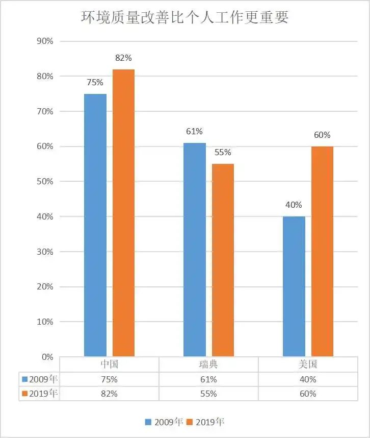 這張圖表,也很讓人振奮,中國(guó)普通人,對(duì)環(huán)境治理的責(zé)任感和主動(dòng)付出意志,明顯更高。