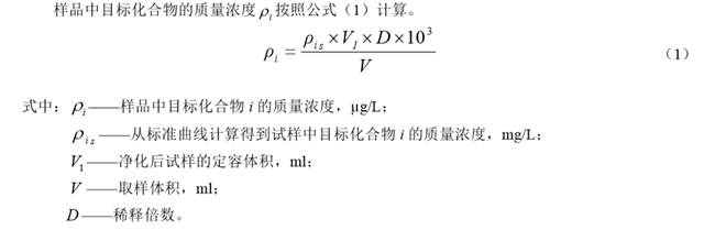 將固相萃取柱(5.14)放到固相萃取裝置(6.4)上。用 5 ml 甲醇(5.5)以 2 ml/min 左右速度 通過固相萃取柱,在填料將要暴露于空氣之前,向柱上加 5ml 實(shí)驗(yàn)用水,待實(shí)驗(yàn)用水剩約 1ml 左右 時(shí),停止活化。向活化后的萃取柱上加入待凈化的萃取液,并以 1ml/min 速度全部通過柱子后,繼 續(xù)抽吸 10min 或用氮?dú)?5.16)吹掃,使萃取柱干燥。然后用 10ml 甲醇(5.5)洗脫,收集洗脫液,于 50 ℃水浴氮吹濃縮至近干,用甲醇水溶液(5.8)定容至 1.0ml,混勻后經(jīng) 0.22μm 濾膜(5.15)過濾,待測(cè)。