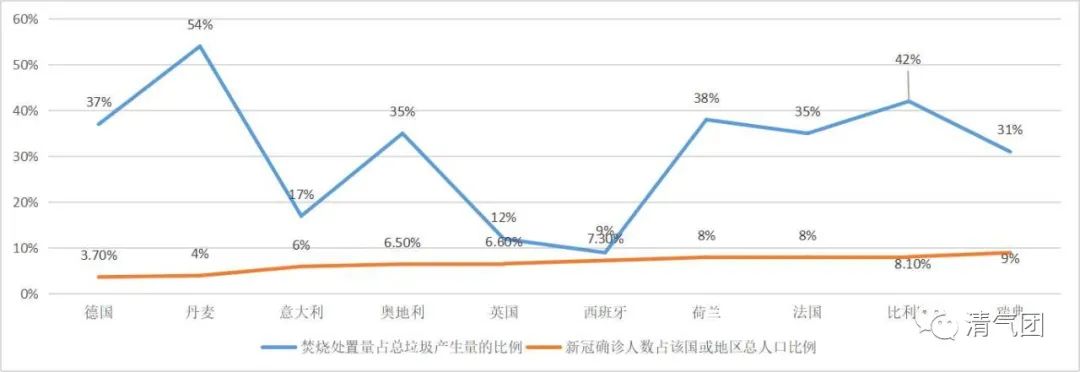 此外,從整個(gè)西歐的數(shù)據(jù)看來,也呈現(xiàn)垃圾焚燒比例高的國家,新冠疫情人口發(fā)病率相對較低的狀況。
