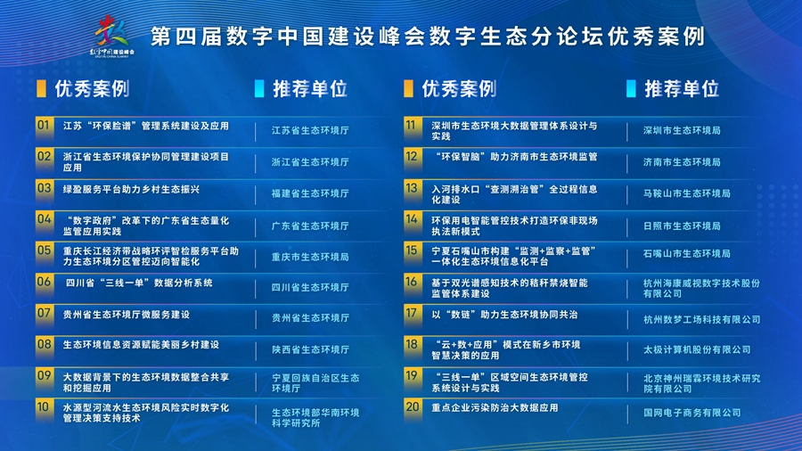 第四屆數(shù)字中國建設(shè)峰會數(shù)字生態(tài)分論壇優(yōu)秀案例名單