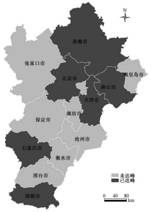 本文通過分析2015—2019年京津冀城市群不同城市的碳排放總量變化趨勢特征,研判京津冀城市群不同城市的經(jīng)濟(jì)增長與碳排放的脫鉤狀態(tài),得出北京、天津、石家莊和邯鄲經(jīng)濟(jì)增長與碳排放呈強(qiáng)脫鉤狀態(tài);保定、張家口和承德經(jīng)濟(jì)增長與碳排放呈弱脫鉤狀態(tài);唐山、秦皇島、邢臺(tái)、滄州和廊坊經(jīng)濟(jì)增長與碳排放呈擴(kuò)張性負(fù)脫鉤狀態(tài);衡水市的經(jīng)濟(jì)增長與碳排放呈擴(kuò)張性連接狀態(tài)。進(jìn)而判定保定、張家口、秦皇島、邢臺(tái)、滄州、廊坊、衡水7市碳排放量暫未達(dá)到峰值狀態(tài),北京、天津、石家莊、承德、邯鄲和唐山6市碳排放量已經(jīng)處于碳排放達(dá)峰狀態(tài)。