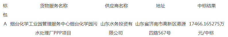 原標題:煙臺化學(xué)工業(yè)園管理服務(wù)中心煙臺化學(xué)工業(yè)園污水處理廠PPP項目中標公告