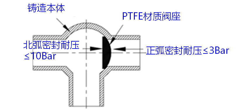 弧形密封閥座材質由PTFE制成工作溫度:-40℃~110℃