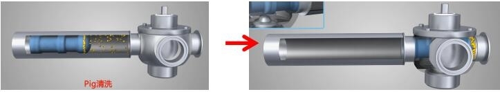 特殊的弧形閥芯設計,可實現物料的在線Pig清洗回收。