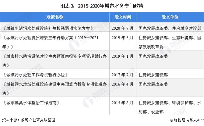 隨著城市用水人口的增長,我國城市水務(wù)面臨較大的供給壓力,因此國家十分注重城市水務(wù)的發(fā)展,近年來發(fā)布了一系列相關(guān)政策,特別是污水治理方面。其中《城鎮(zhèn)污水處理提質(zhì)增效三年行動方案(2019—2021年)》指出,目標(biāo)經(jīng)過3年努力,地級及以上城市建成區(qū)基本無生活污水直排口,基本消除城中村、老舊城區(qū)和城鄉(xiāng)結(jié)合部生活污水收集處理設(shè)施空白區(qū),基本消除黑臭水體,城市生活污水集中收集效能顯著提高。