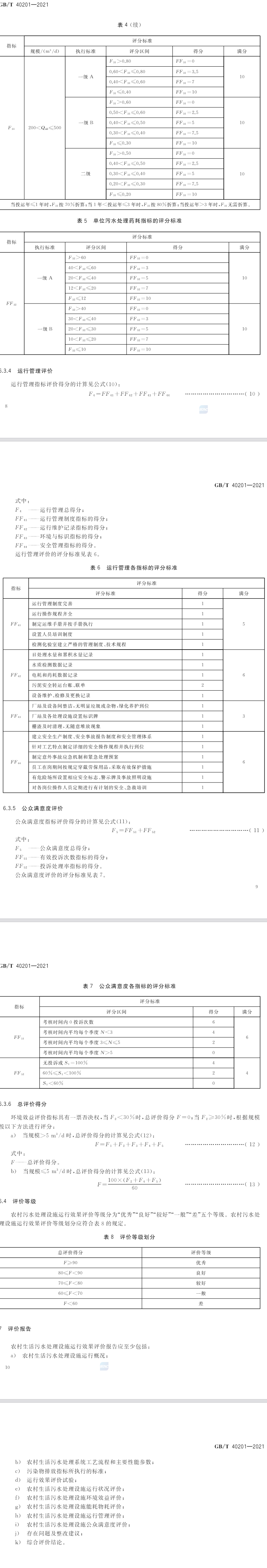 1、范圍本標(biāo)準(zhǔn)規(guī)定了農(nóng)村生活污水處理設(shè)施運行效果評價的總則、評價指標(biāo)與計算方法、評價方法,以及評價報告。本標(biāo)準(zhǔn)適用于農(nóng)村生活污水處理設(shè)施(規(guī)模≤500m3/d)運行效果評價。