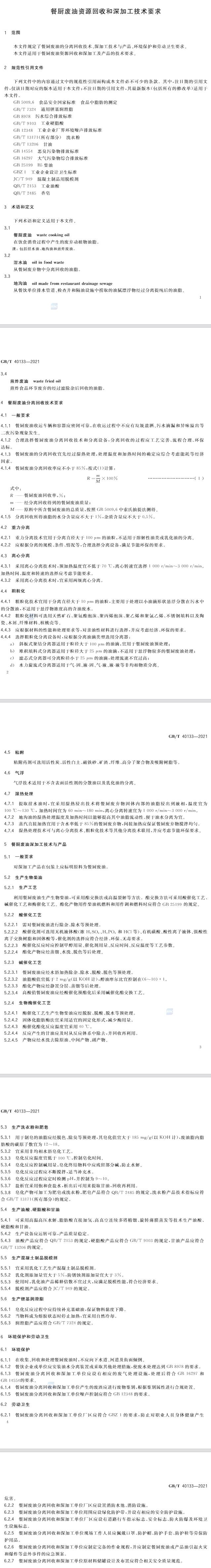 本文件適用于餐廚廢油賣源回收和深加工及產(chǎn)品的技術(shù)要求。