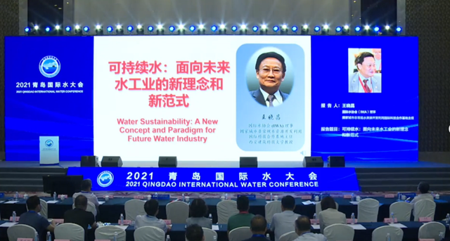 ▲國際水協(xié)會(IWA)理事、國家城市非常規(guī)水資源開發(fā)利用國際科技合作基地主任王曉昌作主題為《可持續(xù)水:面向未來水工業(yè)的新理念和新范式》的分享