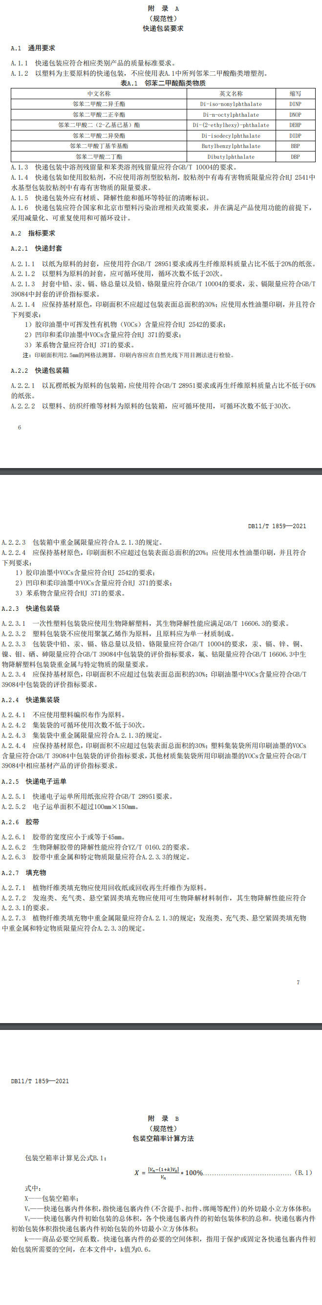 4.1.3 寄遞企業(yè)應(yīng)選擇適宜尺寸的包裝,快遞包裝空箱率不超過20%,包裝空箱率的計算方法詳見附錄 B。