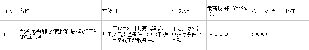 包鋼五燒1#燒結(jié)機(jī)脫硫脫硝提標(biāo)改造工程EPC總承包項(xiàng)目招標(biāo),內(nèi)容如下,明細(xì)詳見(jiàn)公告附表