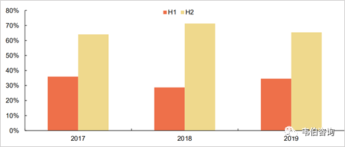 圖表11:2017-2019年垃圾發(fā)電項目上下半年中標(biāo)集中情況