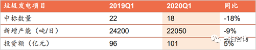 圖表9:2019年Q1-2020年Q1全國垃圾發(fā)電項目中標(biāo)情況