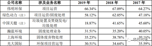 注:綠色動力從2018年年報開始將項目運營業(yè)務(wù)毛利率調(diào)整為披露固廢處理業(yè)務(wù)毛利率,相關(guān)披露口徑存在一定變化;中國天楹2019年垃圾處理業(yè)務(wù)毛利率變化主要系2019年1月完成固廢管理業(yè)務(wù)收購所致。