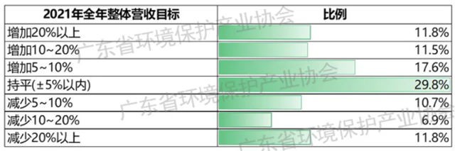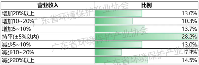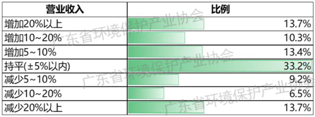 在營業(yè)收入方面,37.4%的環(huán)保企業(yè)反饋2021年二季度年營業(yè)收入同比增長,33.2%的環(huán)保企業(yè)基本持平,29.4%的環(huán)保企業(yè)表示同比下降。