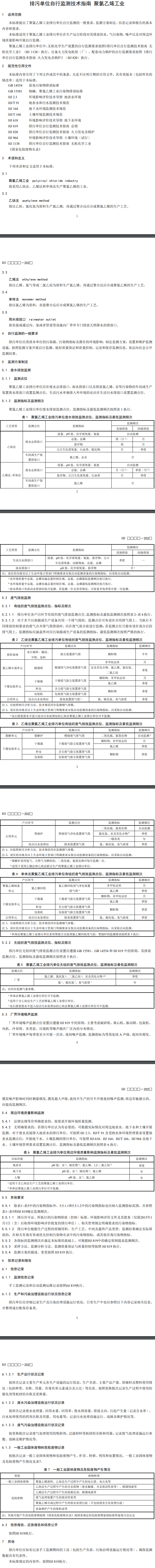 排污單位自行監(jiān)測技術指南 聚氯乙烯工業(yè)(征求意見稿)